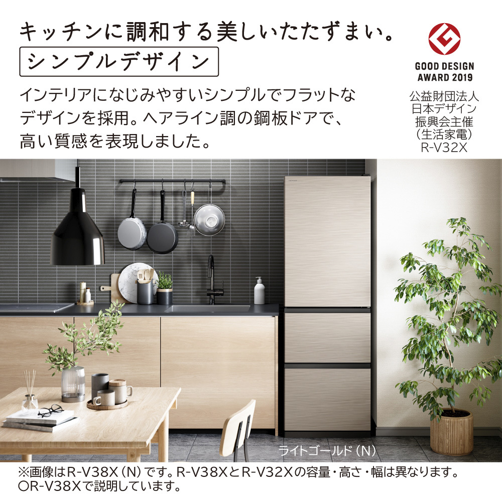冷蔵庫 Vタイプ ライトゴールド R-V32XL-N [幅54cm /315L /3ドア /左開きタイプ /2025年]