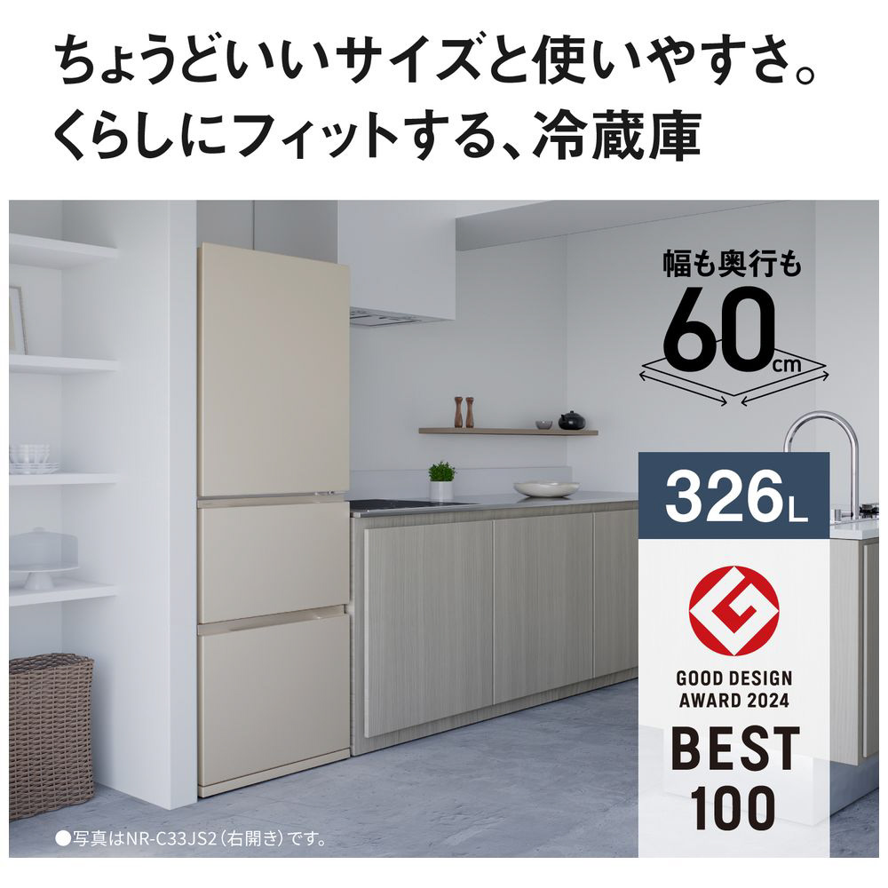 冷蔵庫 JSタイプ マットライトベージュ NR-C33JS2-C [幅60cm /326L /3ドア /右開きタイプ /2025年]