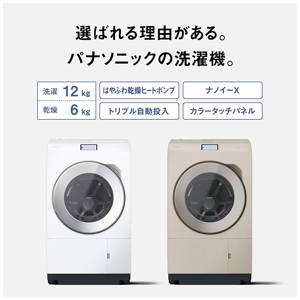 ※1 洗濯〜乾燥おまかせコース・定格洗濯乾燥6kg時。パナソニック2024年度モデルNA-LX129D(約890Wh)とNA-LX129E(約800Wh)の消費電力量比較。衣類の素材・入れ方・洗濯時の状況により、運転時間・消費電力量は前後します。
