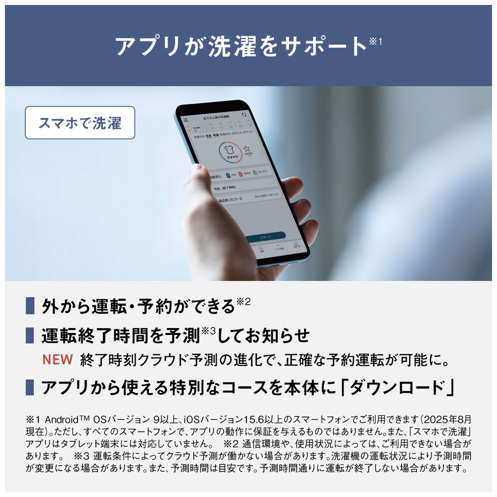 ・NEW 予約運転の終了時刻がより正確に: 終了時刻クラウド予測がさらに進化。「スマホで洗濯」アプリが洗濯をサポート※6。