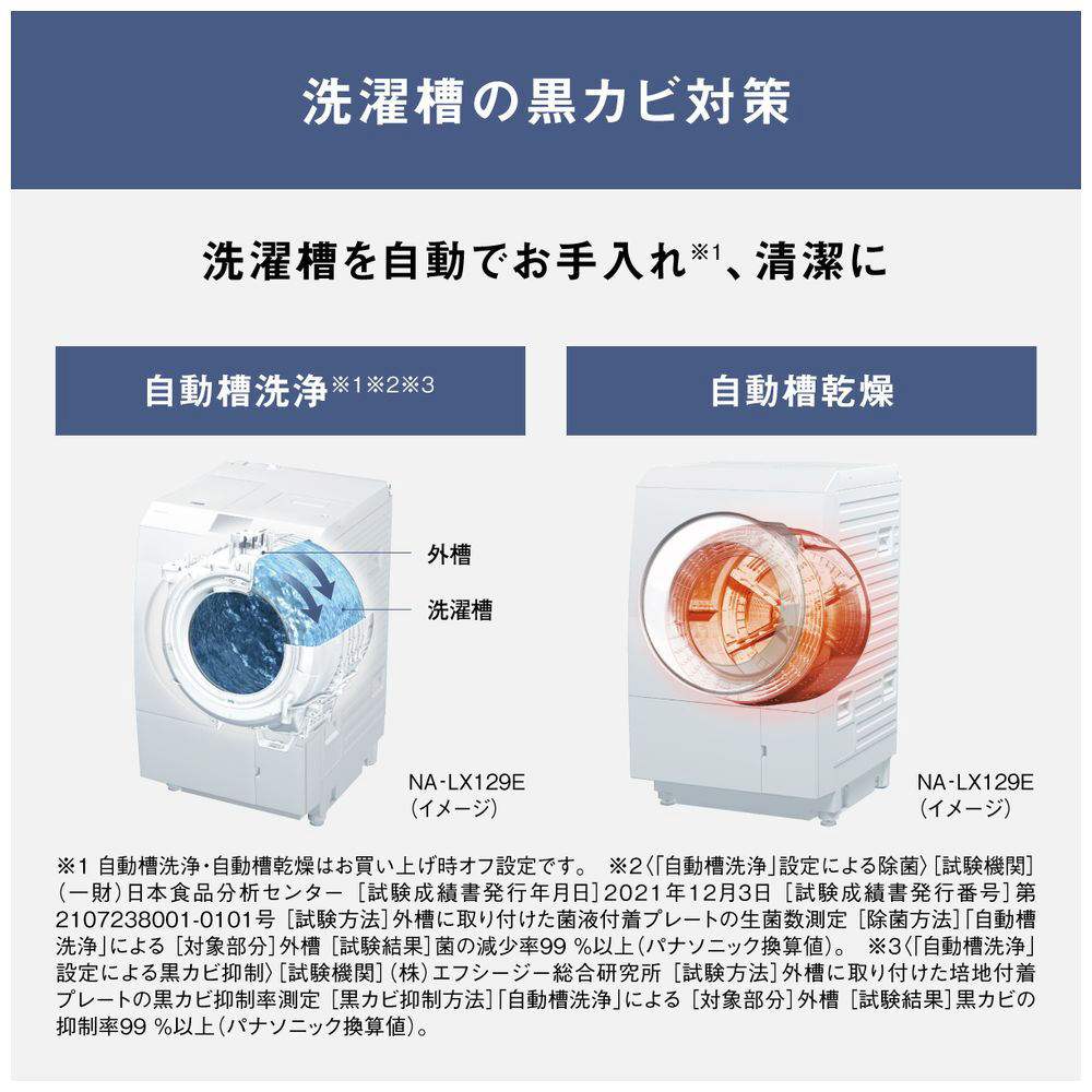 ※1 洗濯〜乾燥おまかせコース・定格洗濯乾燥6kg時。パナソニック2024年度モデルNA-LX125D(約960Wh)とNA-LX125E(約945Wh)の消費電力量比較。衣類の素材・入れ方・洗濯時の状況により、運転時間・消費電力量は前後します。