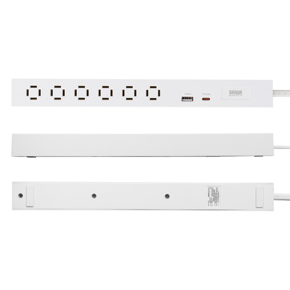スリムタップ(AC6個口・A1+C1・PD33W) ホワイト TAP-SLIM6UC-3W [3.0m /6個口 /1ポート]