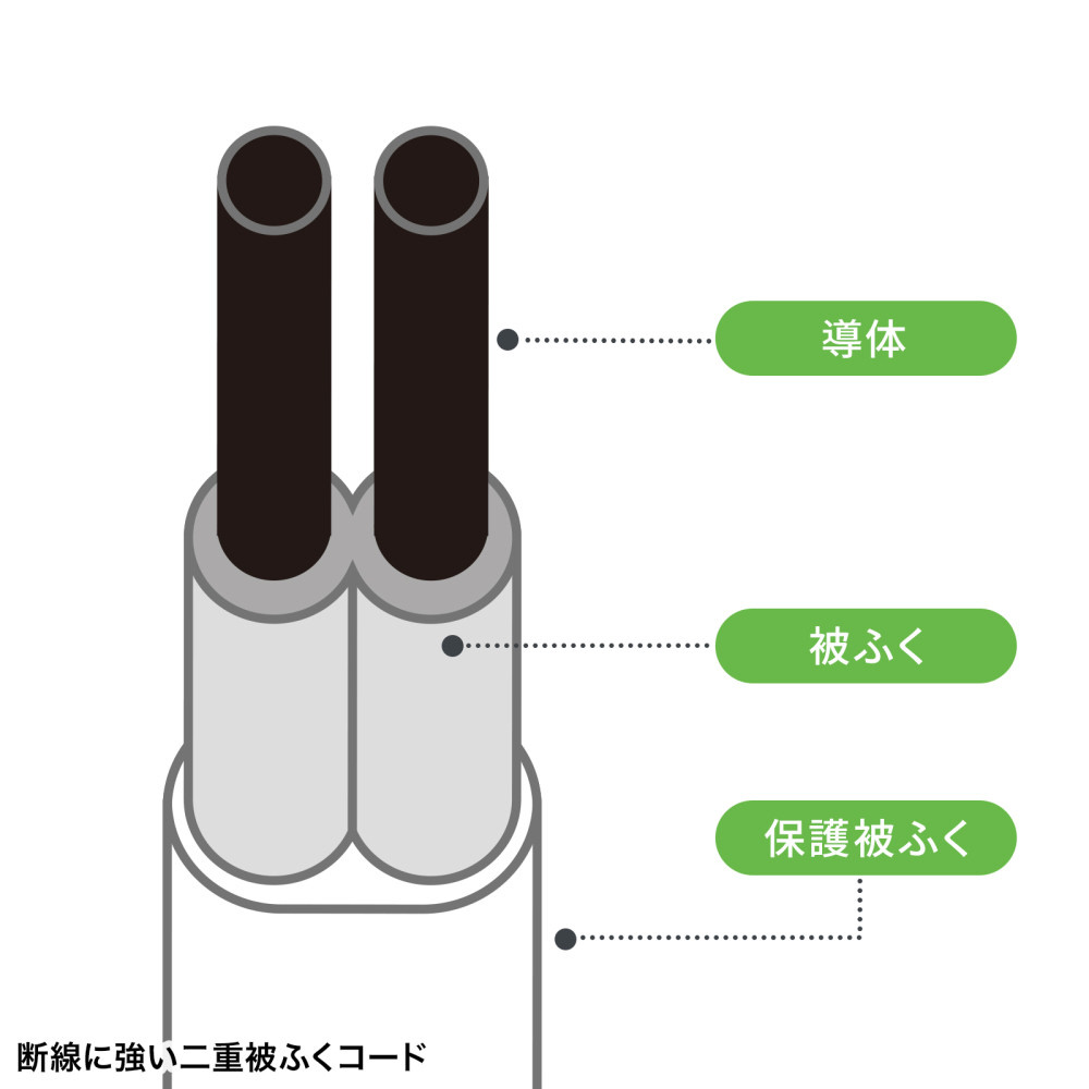 ●3mのVFF保護被ふくコードを採用。耐久性が高く、安心して使用できます。