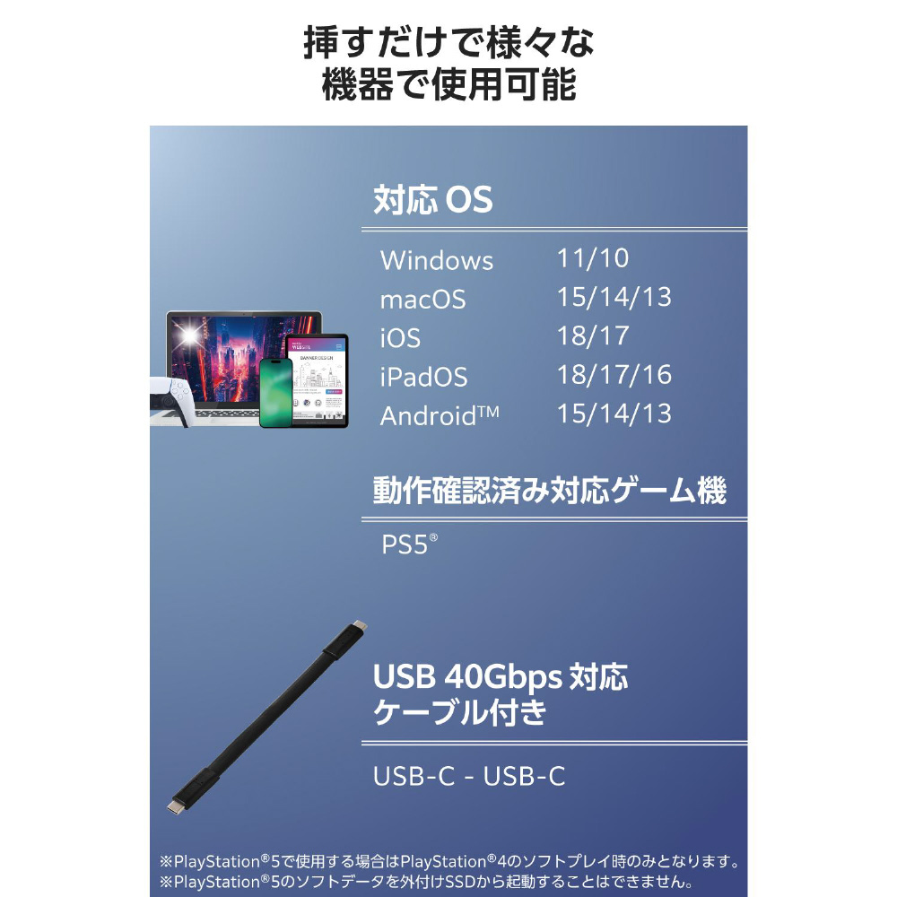 ESD-EHC1000GBK 外付けSSD USB-C接続 PS5対応(Android/iPadOS/iOS/Mac/Windows11対応) ブラック [1TB /ポータブル型]