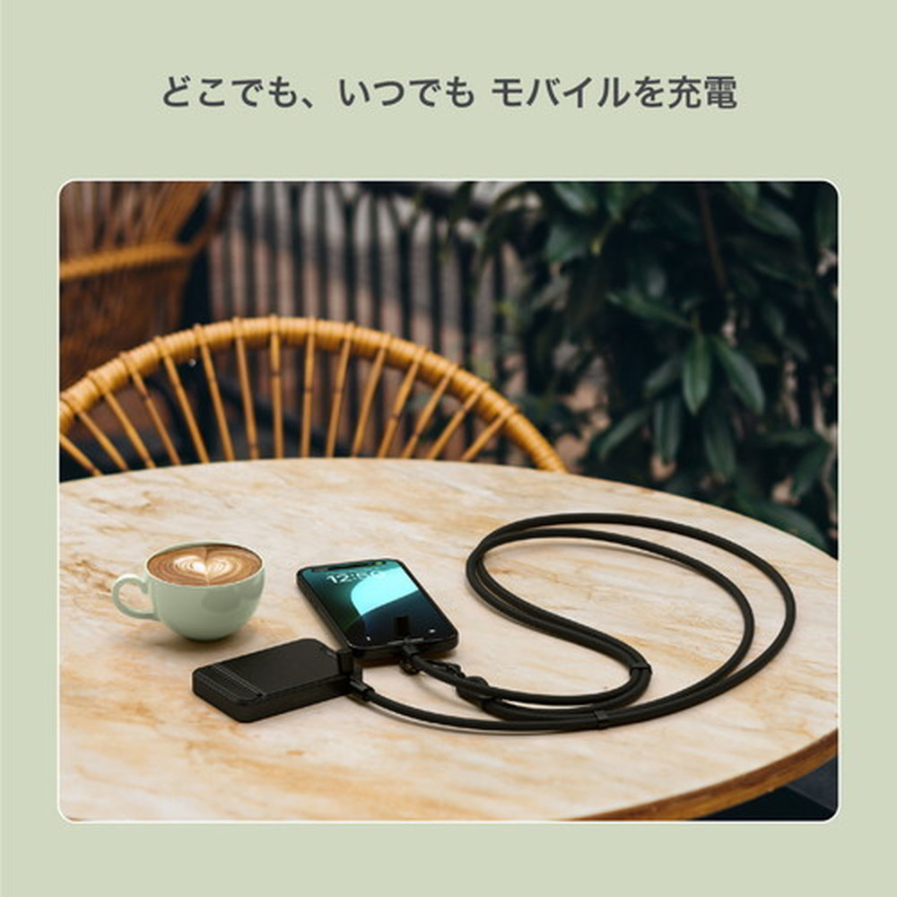 充電ケーブルを忘れる心配はもうありません。最大60W出力に対応するOntheGo クロスボディランヤードを電源またはパワーバンクに接続するだけで迅速かつ効率的に充電できます。