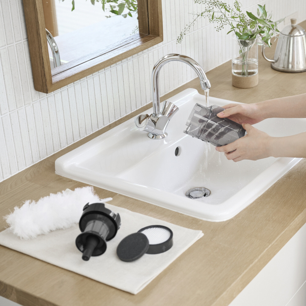 ■軽量の1.1kgで高性能モーターを搭載し強力吸引を実現した充電式サイクロンスティッククリーナーです。