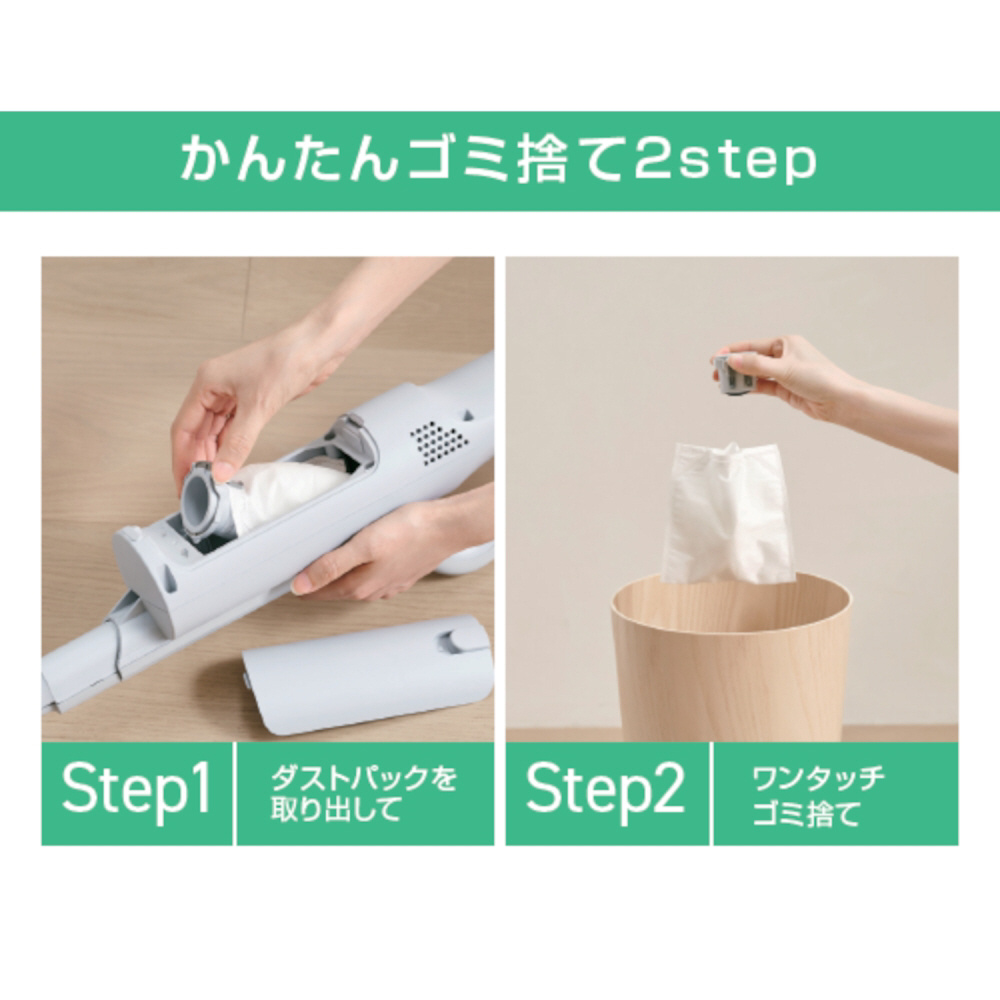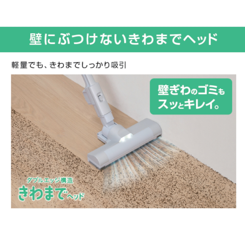 軽量の1.1kgで高性能モーターを搭載し強力吸引を実現した充電式紙パックスティッククリーナーです。