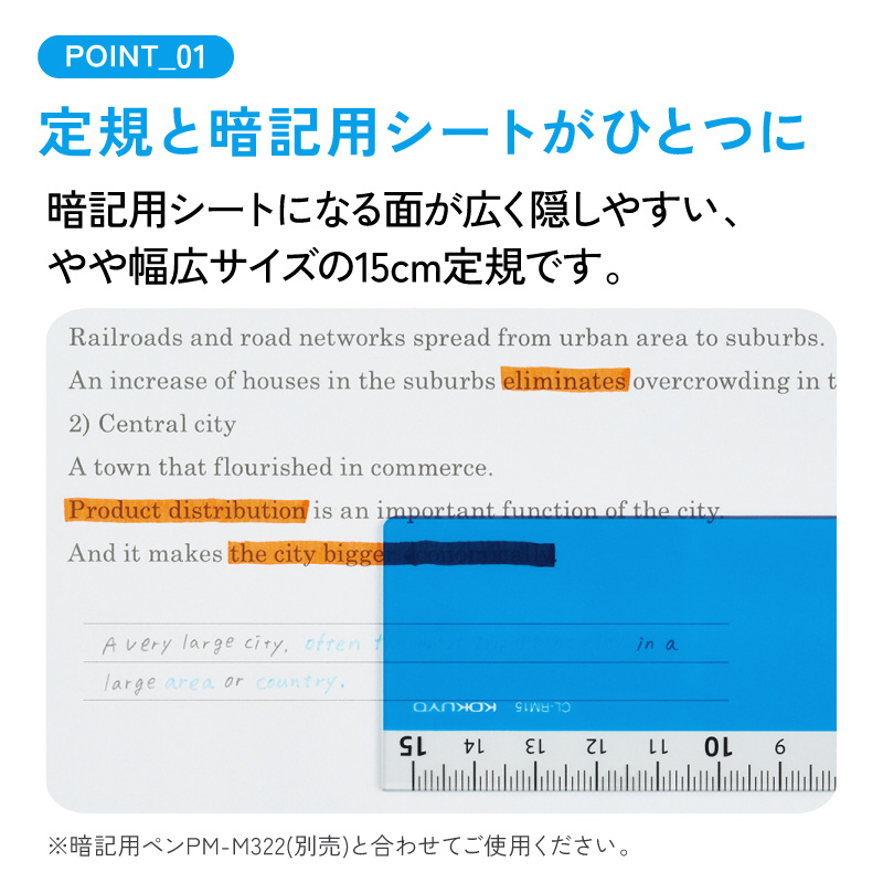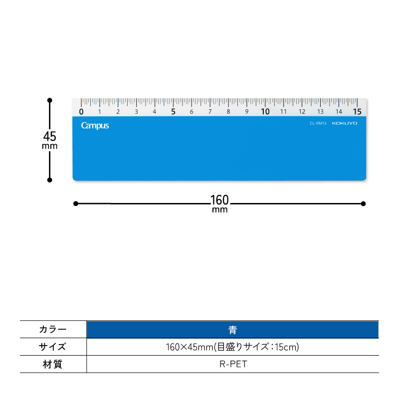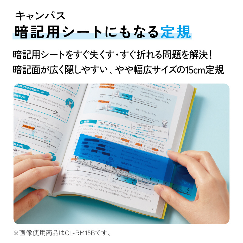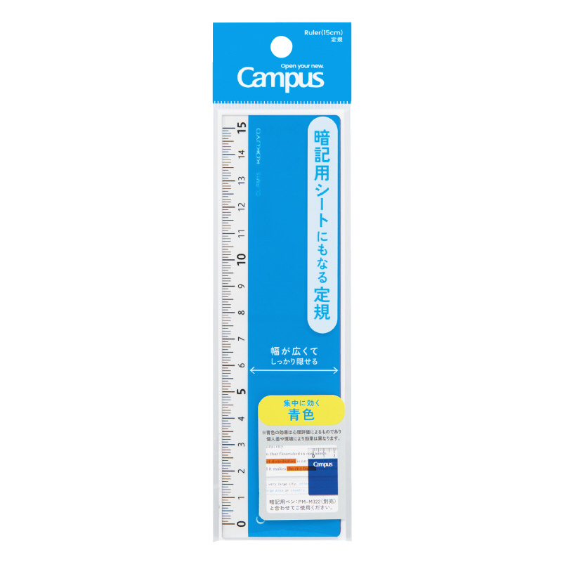 暗記用シートにもなる定規 Campus(キャンパス) 青 CL-RM15B