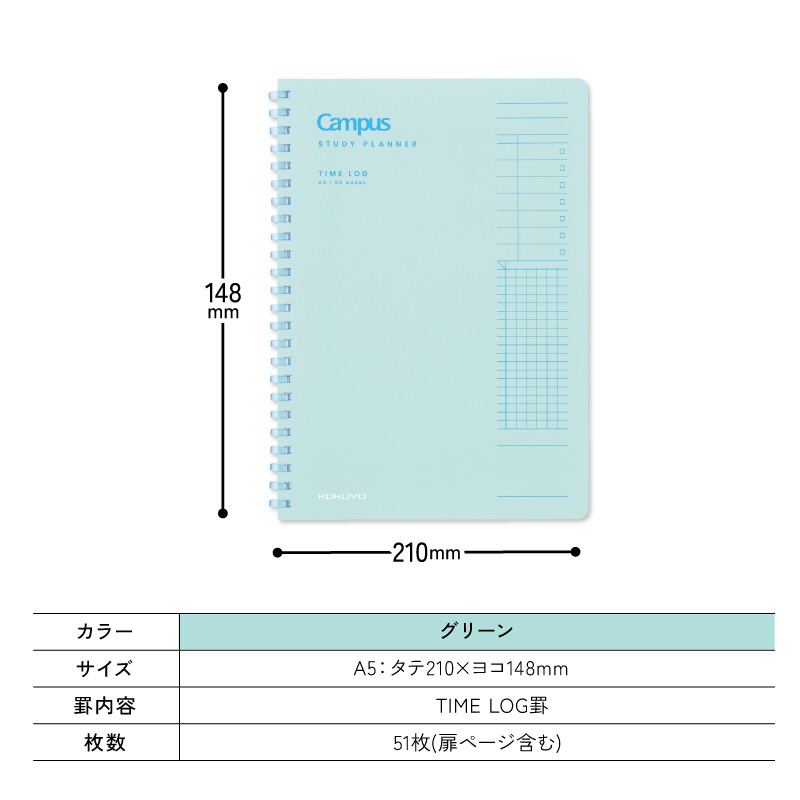スタディプランナー<TIMELOG>A5 ス-SY131TL-G Campus(キャンパス)