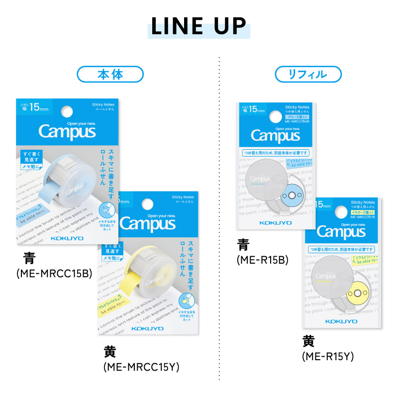 スキマに書き足すロールふせん(つめ替え用) Campus(キャンパス) 黄 ME-R15Y