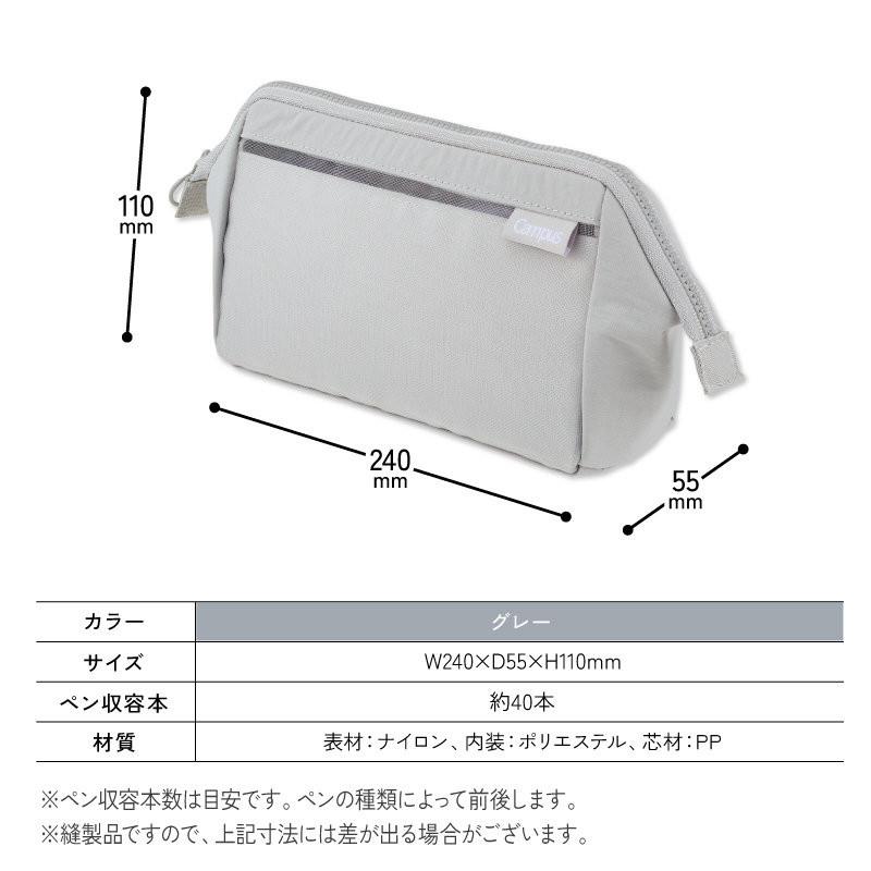 スタメン文具が仕分けできるペンケース Campus(キャンパス) グレー F-VBF320M