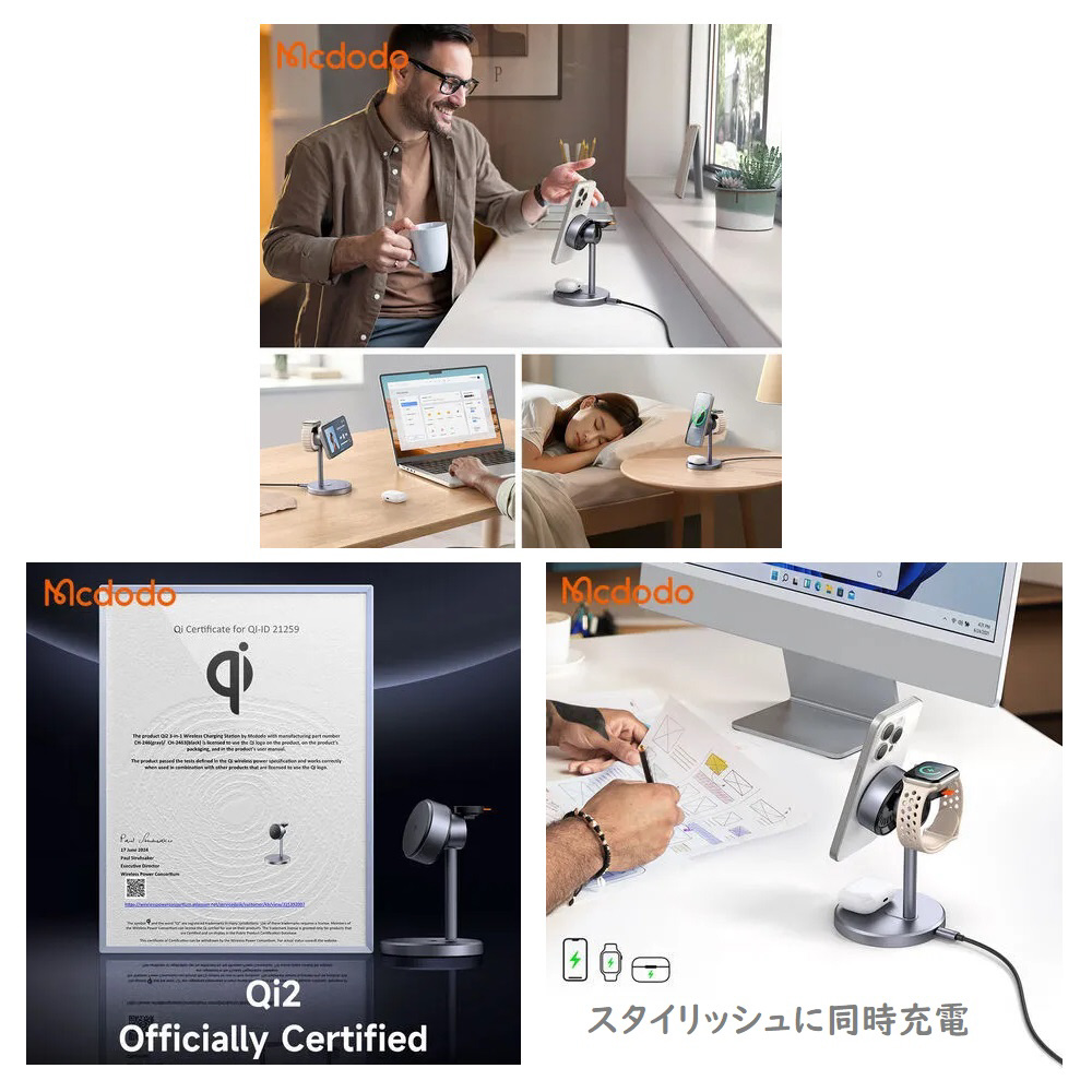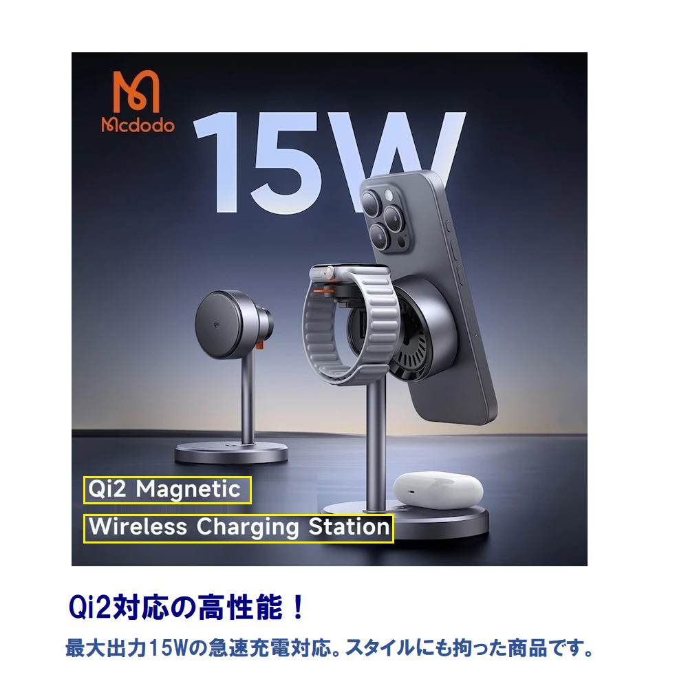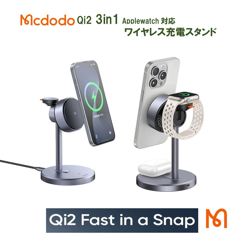 Qi2 3in1 Appplewatch対応 ワイヤレス充電スタンド