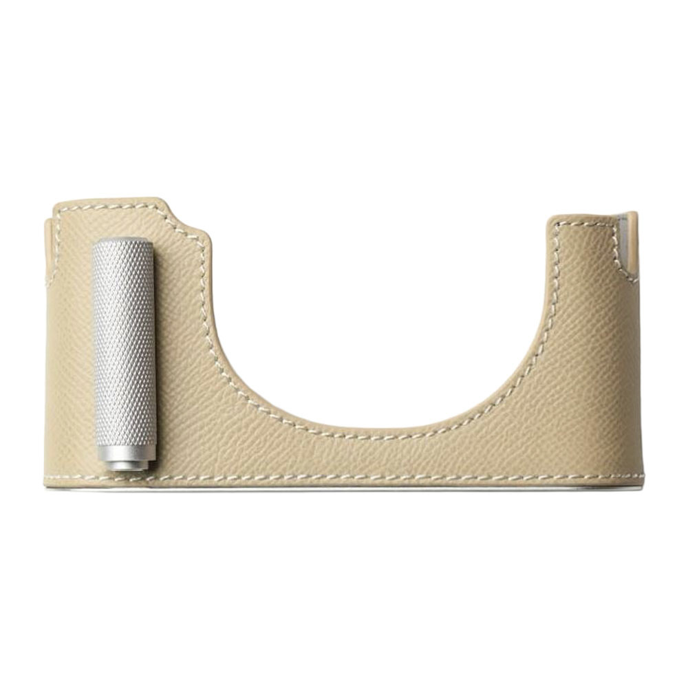 LEICA M11用 本革ケース クラシック シグニチャーグリップ ライトベージュ/白ステッチ PTBK009