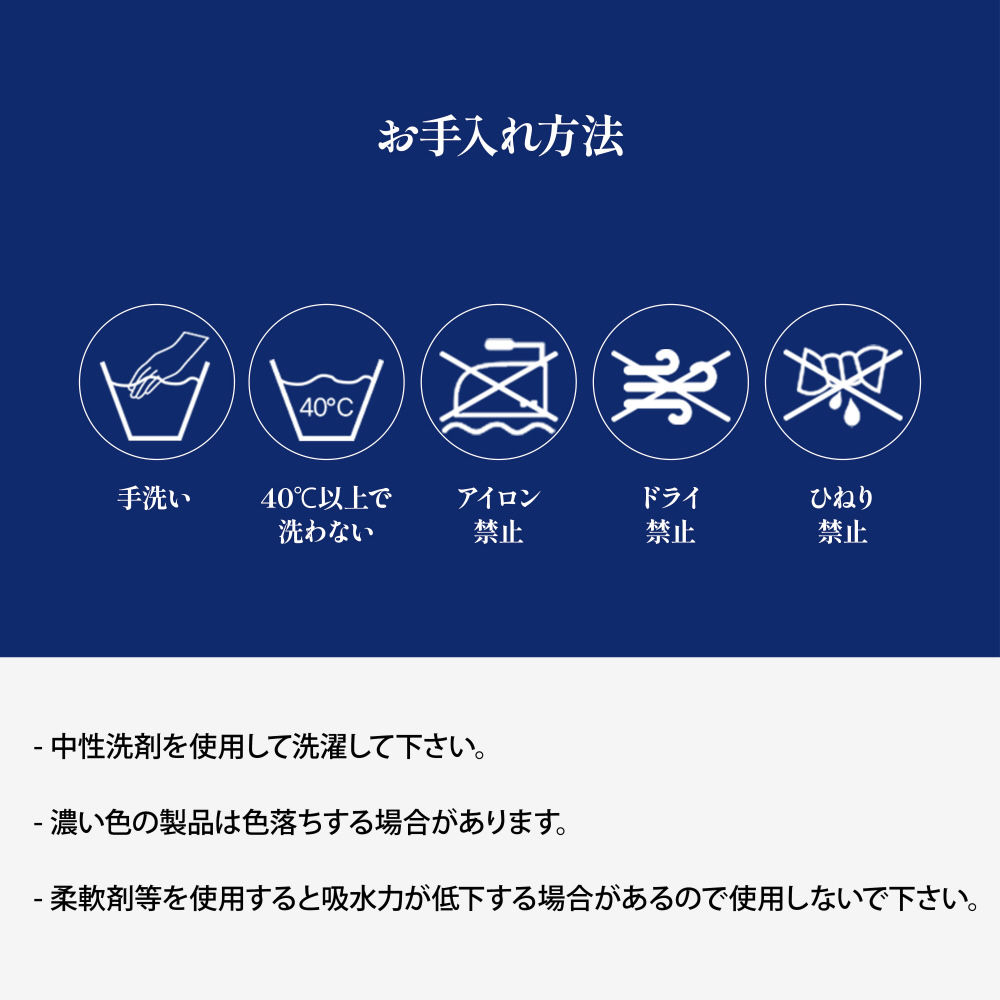 柔軟剤等を使用すると吸水力が低下する場合があるので使用しないでください。