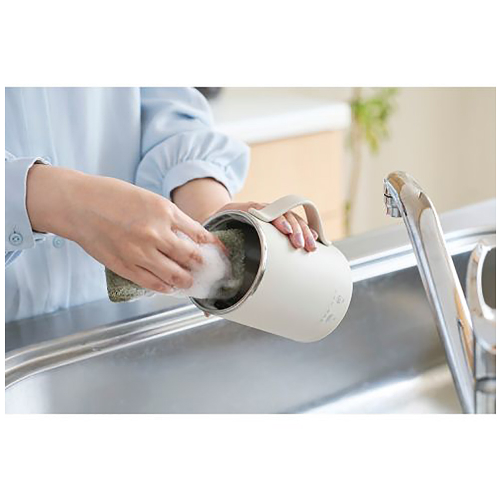 材料を入れてスイッチを押すだけで、ほかほかのスープや味噌汁を手軽に作れるマグカップ型電気なべ・Cook Mug(クックマグ)です。約1.5mのロングコードを採用し、デスクなどさまざまな場所で使いやすい、程よい長さです。1杯分(350ml)だけお湯を沸かしたり飲み物を淹れたりするのにもぴったり。スイッチ一つで簡単に温め直しや保温ができるから、いつでも“できたて”を味わえます。