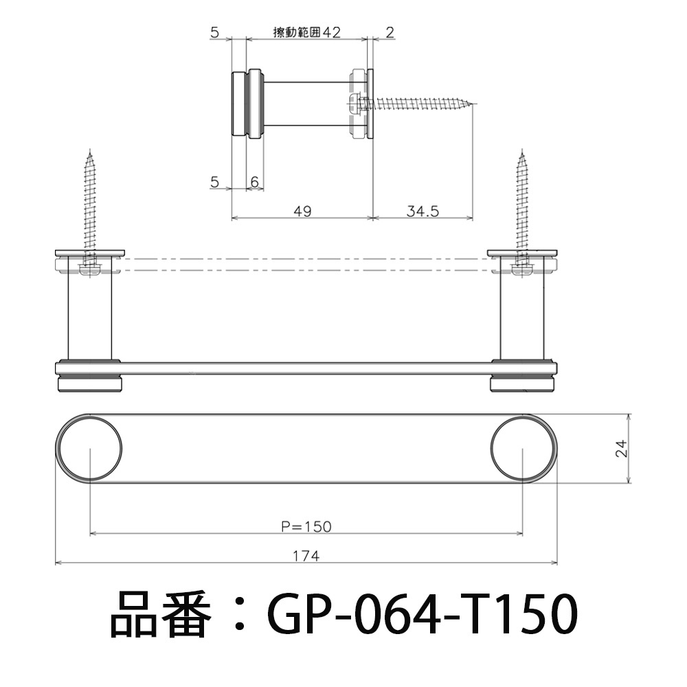 仕様1 ■製品サイズ: 幅: 174mm、出幅: 49mm、高さ: 24mm