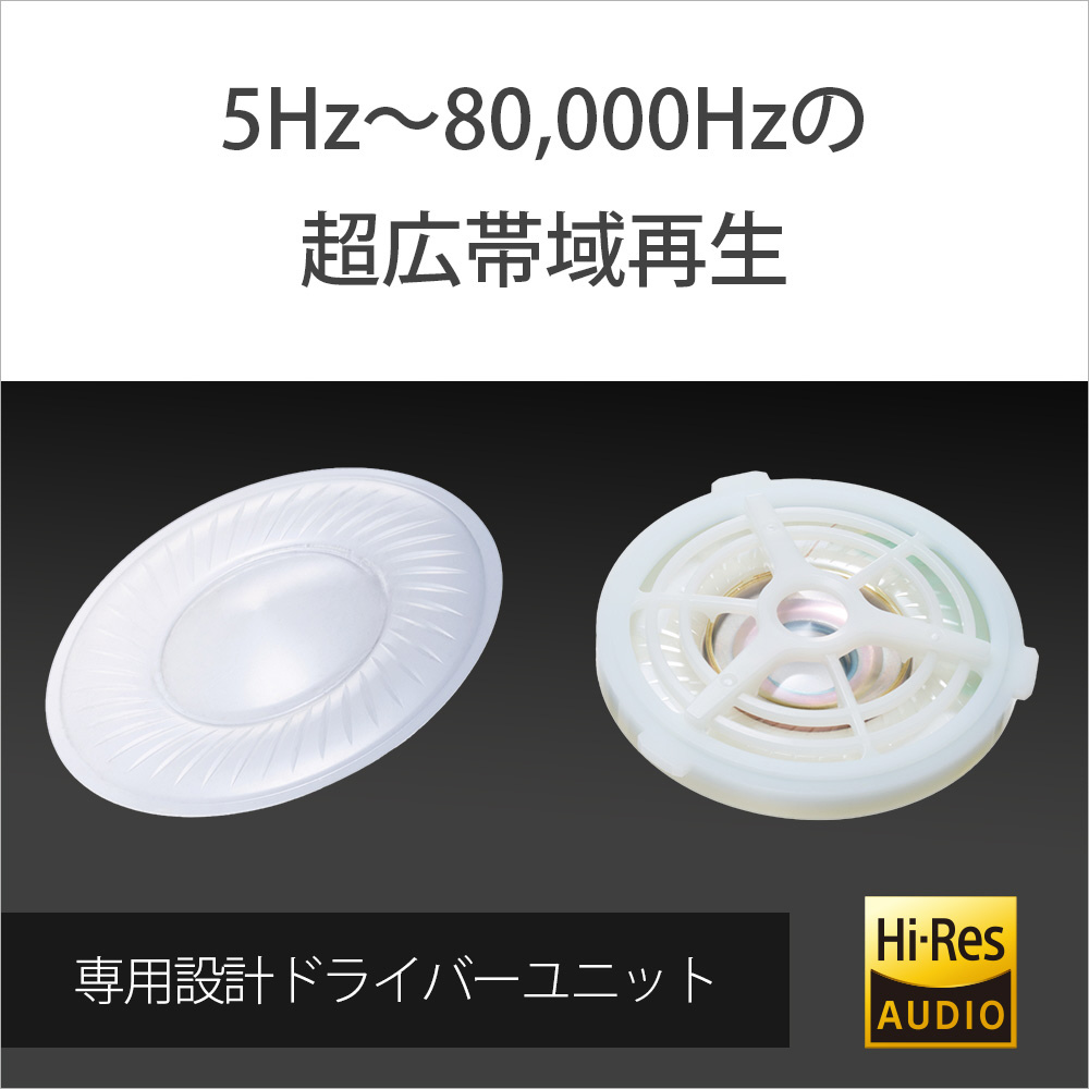 音質の核となる振動板は、充分な量感と低歪で低音域を再生するための柔らかさと、超高音域を再生するために形状を保持する硬さとを兼ね備える必要があります。そのため、複数回に渡る試作を経て、5Hz-80kHzの超広帯域再生を実現する特殊な振動板形状を採用しました。