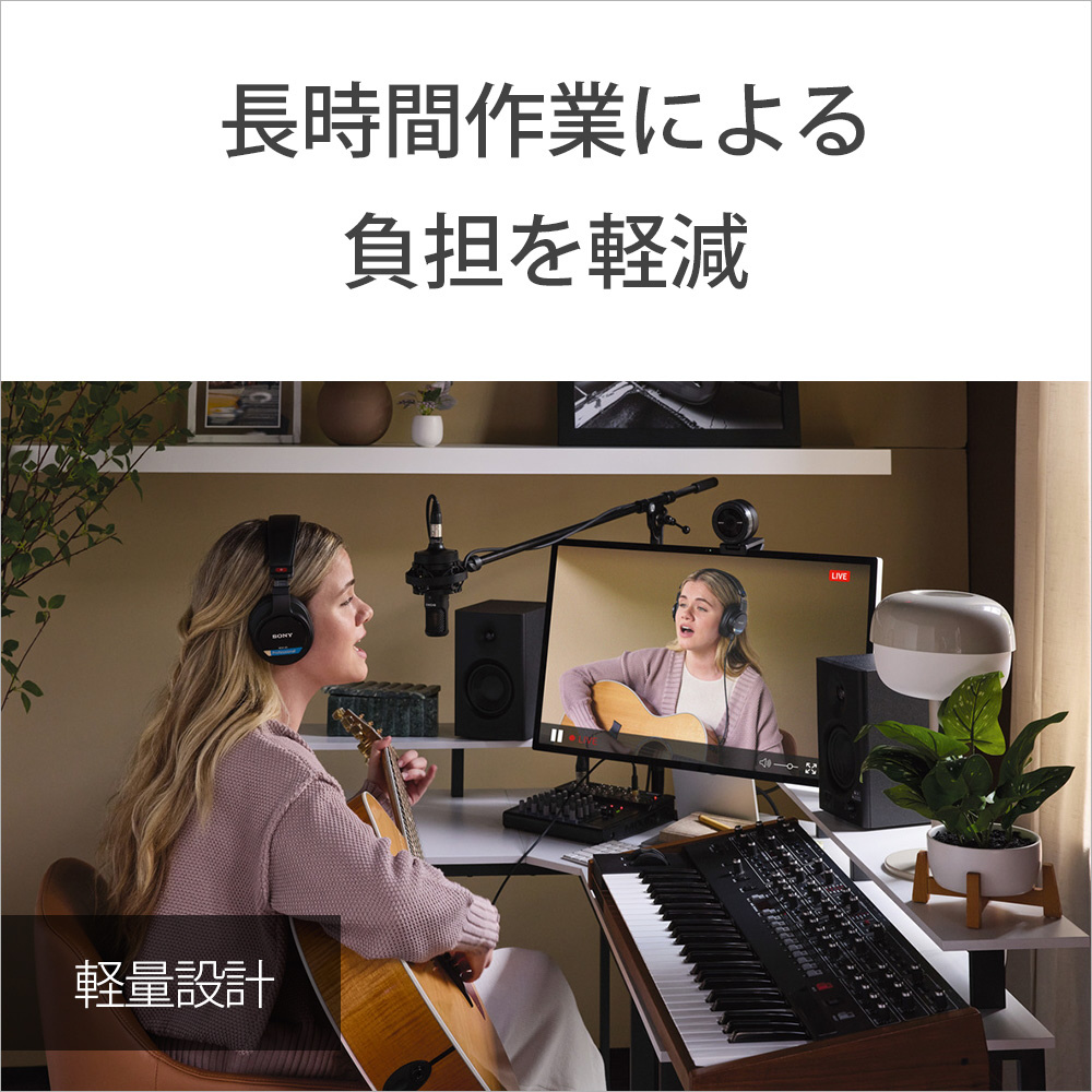 音楽制作において、ヘッドホンの連続使用時間が6時間を超えることもあります。長時間作業による負担を軽減するため、ヘッドホン本体の軽量化を徹底的に行っています。数々のヘッドホン開発で得た知見を活かし、細部に至るまで軽量化を実現しました。