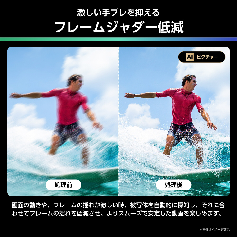●AIエンジン×倍速パネルで、スムーズかつくっきりした映像を実現「AIクリアモーション PRO×144Hz VRR対応倍速パネル」