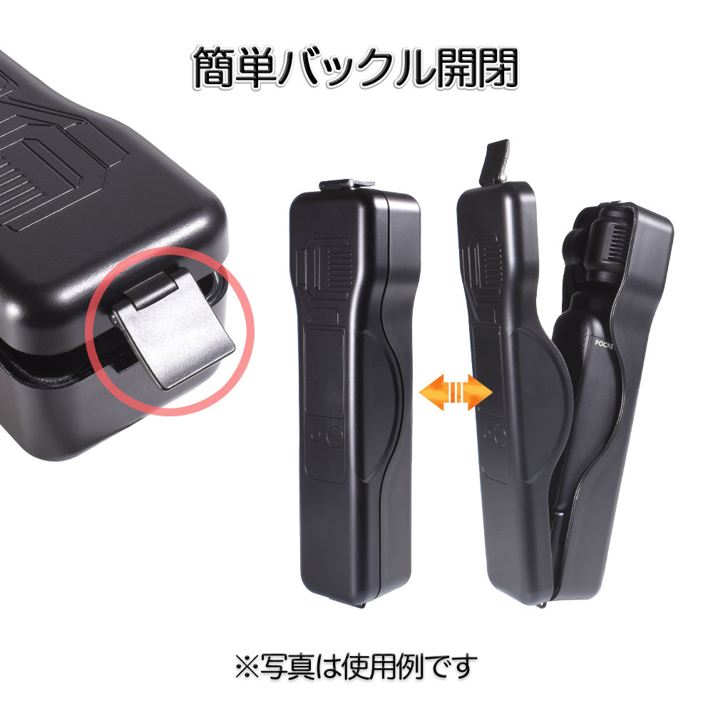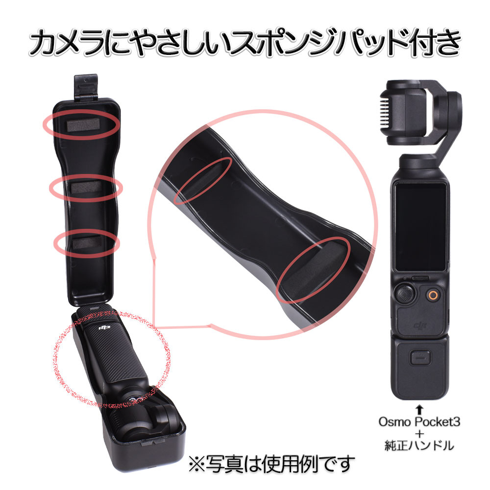 DJI Osmo Pocket3専用の軽量プラスチックケース。純正ハンドル装着時も収納可能で、衝撃や砂埃からしっかり保護。レンズフィルターも2枚収納でき、ストラップ付きで持ち運びに便利です。