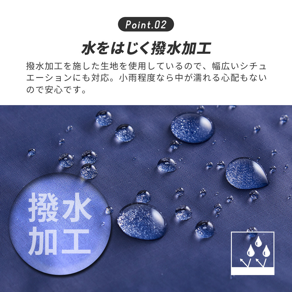 500mlペットボトルが10本も収納でき、撥水加工が施されているため小雨程度なら安心。