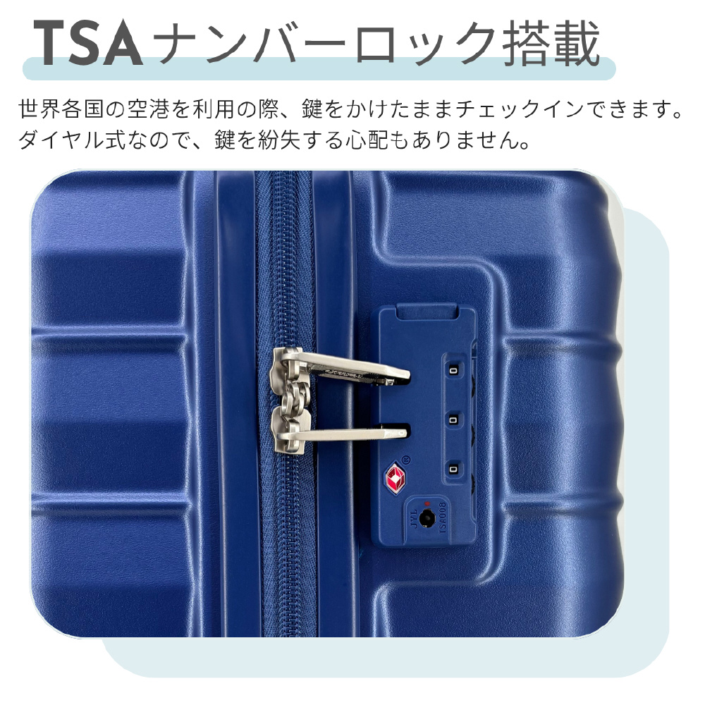 ABS素材の優れた耐久性と洗練されたデザインで、旅行や出張をスマートにサポートします。