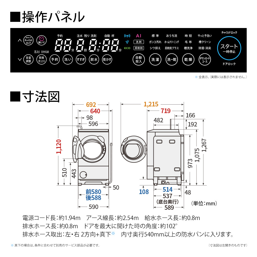 業界最高水準の省エネ。無排気乾燥ドラム式洗濯機。
