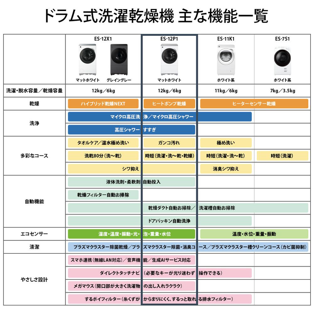 ドラム式洗濯乾燥機 マットホワイト ES-12P1-WR [洗濯12.0kg /乾燥6.0kg /ヒートポンプ乾燥 /右開き]