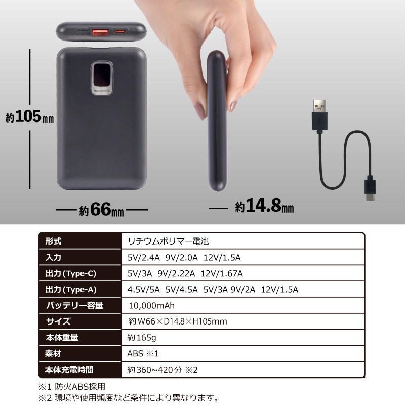 急速充電モバイルバッテリー10000mAh