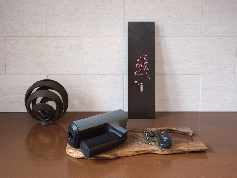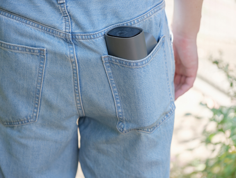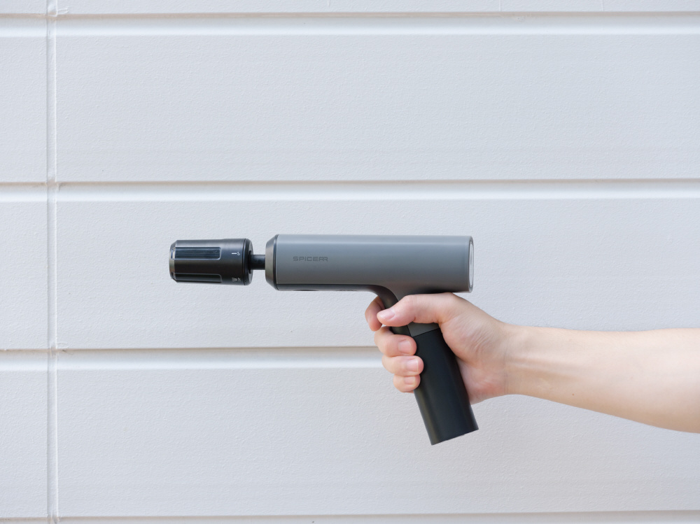折りたたむとホ゜ケットに入るほどのサイズ感、800gと女性でも軽く扱える重量で手軽に使用ができます。また折りたたむことでトリガースイッチが隠れるなど誤作動防止の機能も担っています。