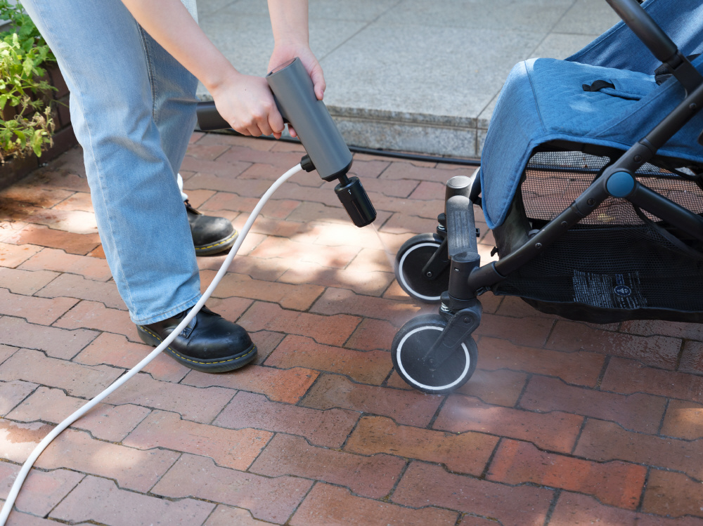 静音設計により、一般的なドライヤー(80db)よりも低い70dbの動作音を実現しました。大型の高圧洗浄機のように使う時間帯に大きく制限されず、幅広い使用が可能です。