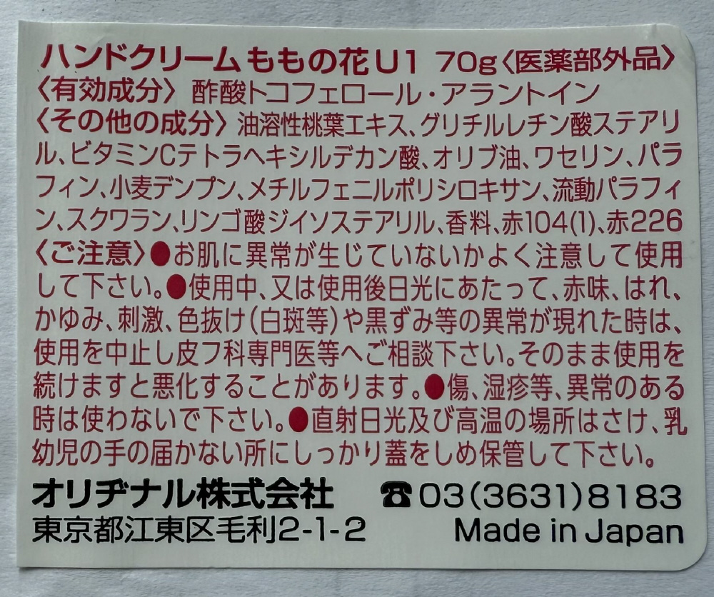 ハンドクリーム ももの花 70g
