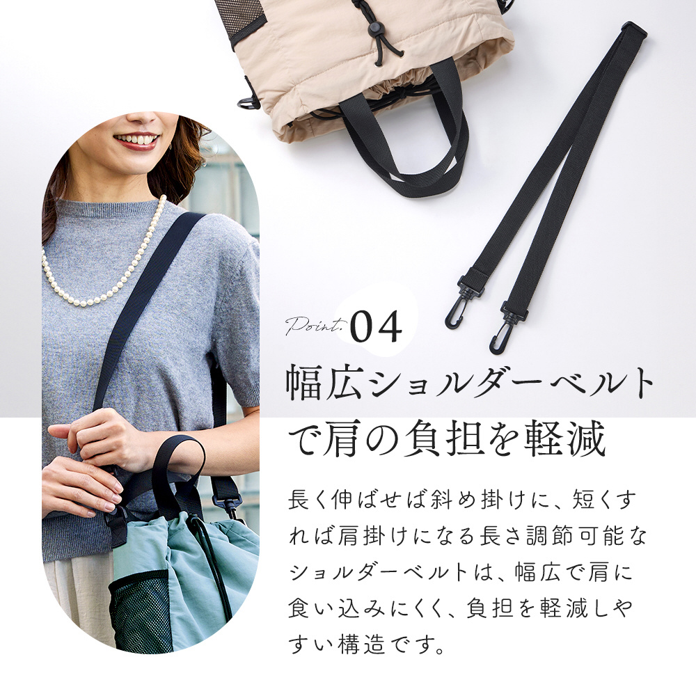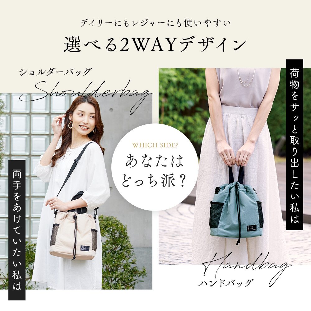 荷物をサッと取り出したい時はハンドバッグとして、両手を空けたい時はショルダーバッグとして活用でき、デイリーからレジャーまで幅広く使えます。