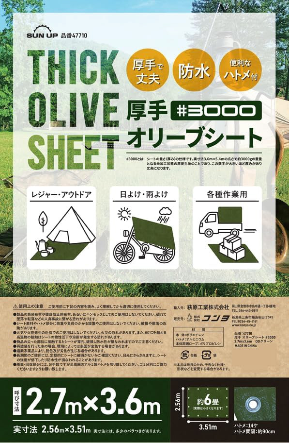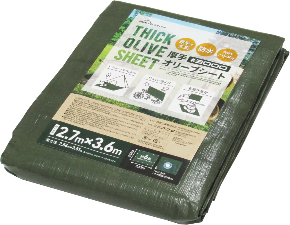 SUN UP 厚手 オリーブシート #3000 2.7m × 3.6m