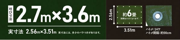 シートの重さ(厚み)の仕様です。実寸法3.6×5.4mの広さで約3000グラムの重量となる未加工状態の原反生地のことであり、この数字が大きいほど厚みがあり、丈夫になります。