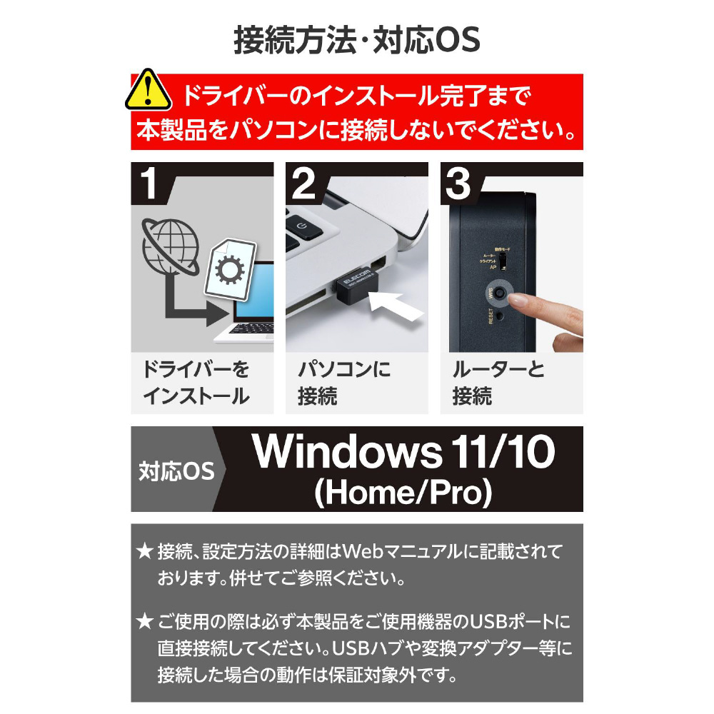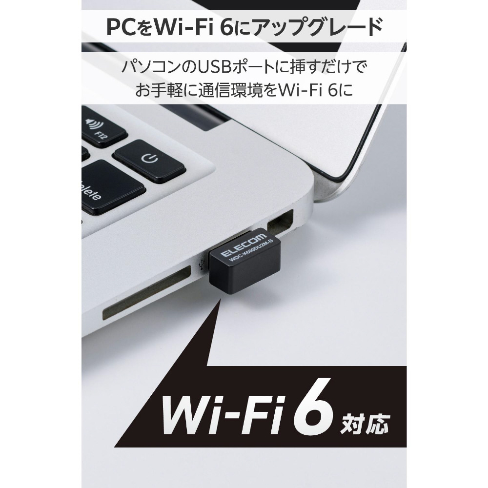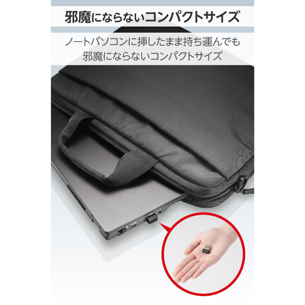 パソコンに装着したままでも邪魔にならない、超小型サイズ!手軽にWi-Fi 6通信ができる11ax・USB2.0対応600Mbps小型無線LANアダプターです。