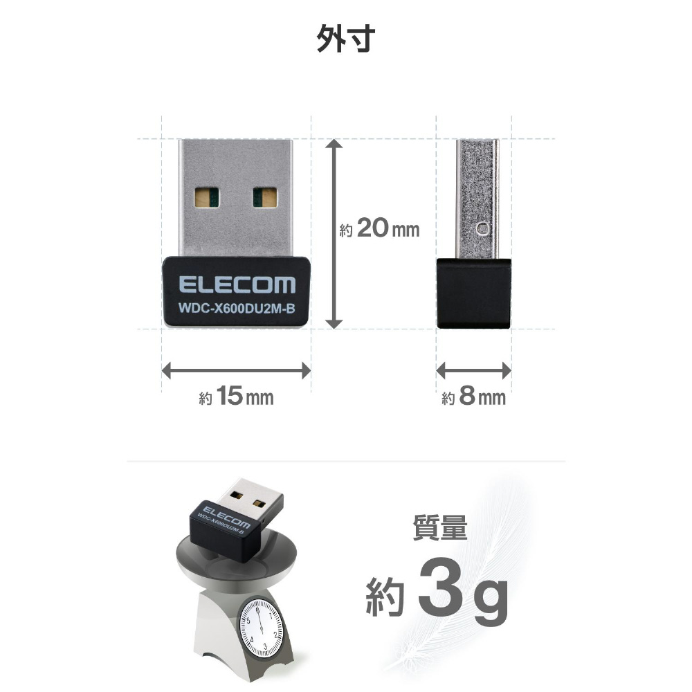 WDC-X600DU2M-B 無線LAN子機 USB-A接続 600Mbps+286Mbps (Windows11対応) ブラック [Wi-Fi 6(ax) /IPv6非対応]