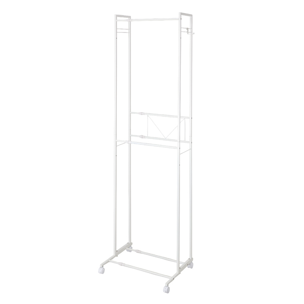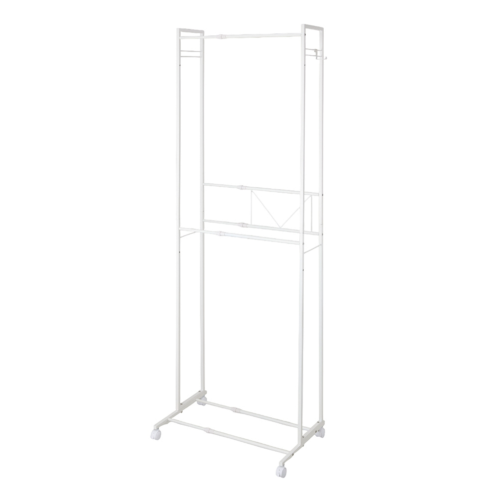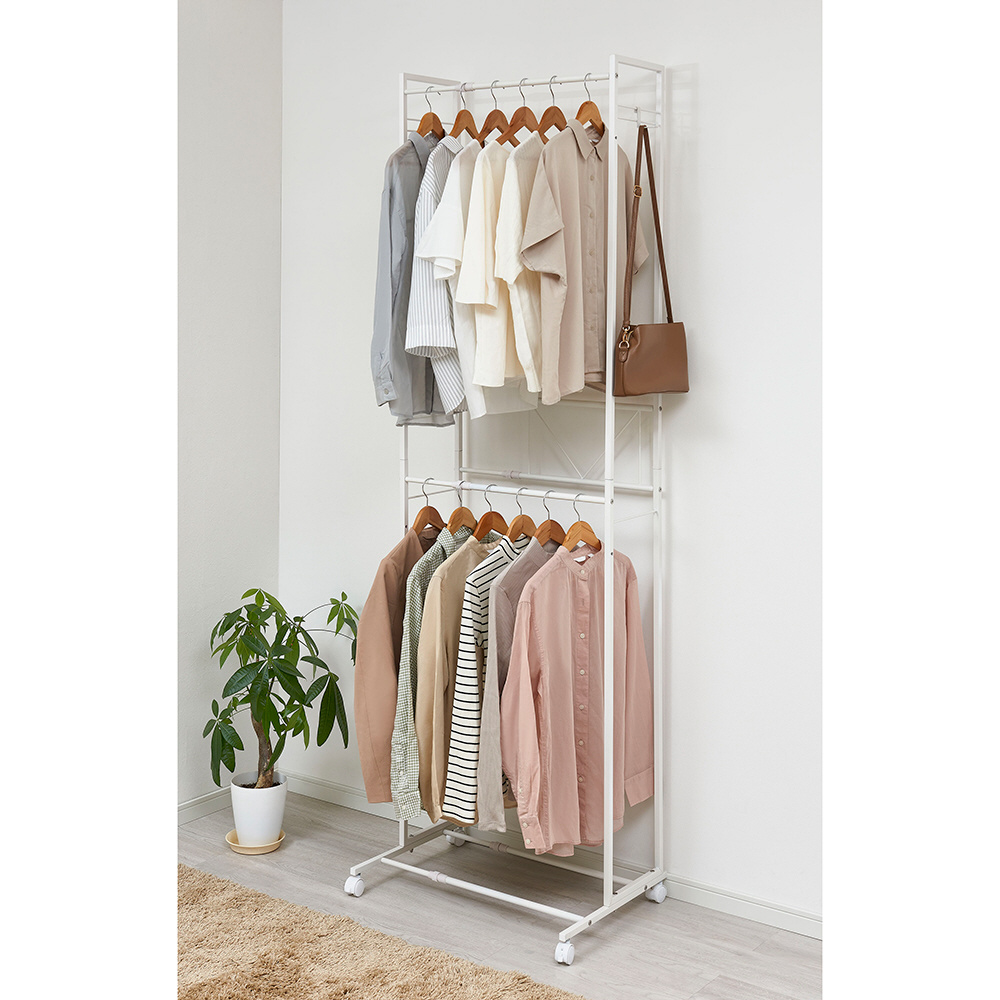 ハンガーラック 2段 ワイド 伸縮タイプ キャスター付き 衣類 収納 ホワイト KP-2HW-W