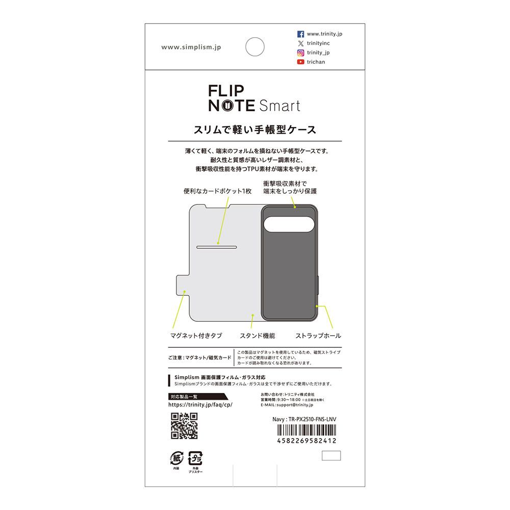 Google Pixel 10 / 10 Pro [Smart FlipNote] 薄型スマートフリップノートケース ネイビー TR-PX2510-FNS-LNV