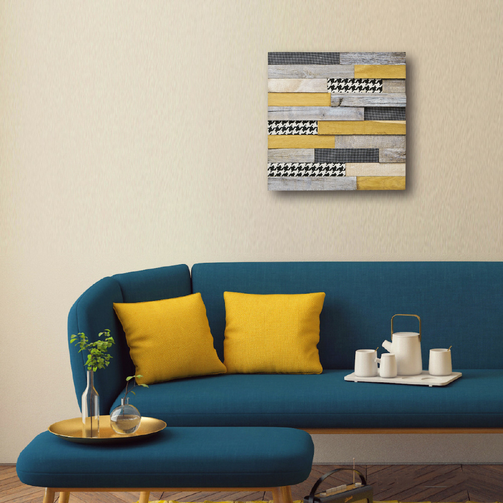 天然木やMDFをチップ状にアレンジし、計算された段差や色の組み合わせにより生み出されるデザインは、ナチュラルとモダンの融合。
