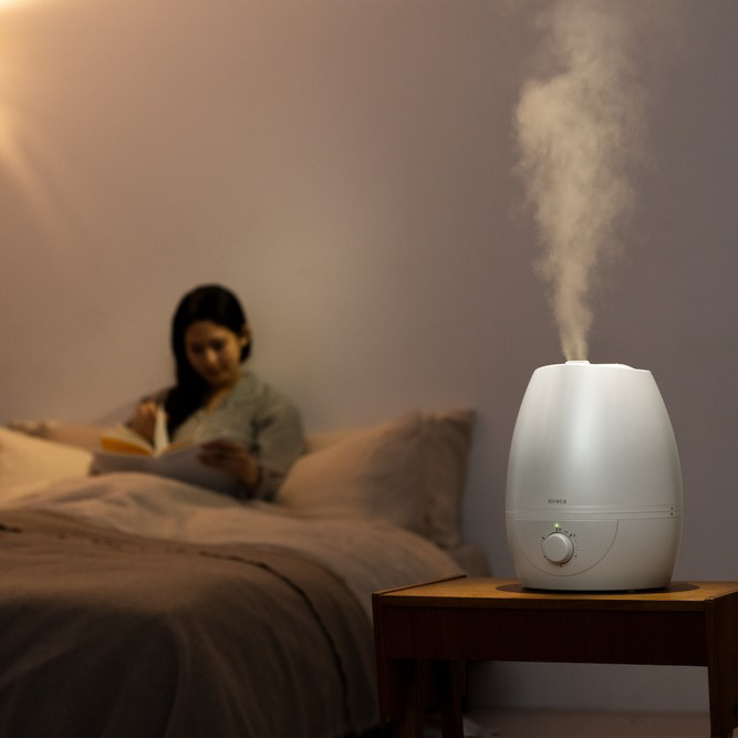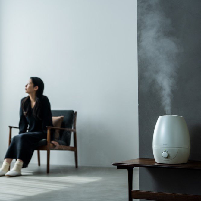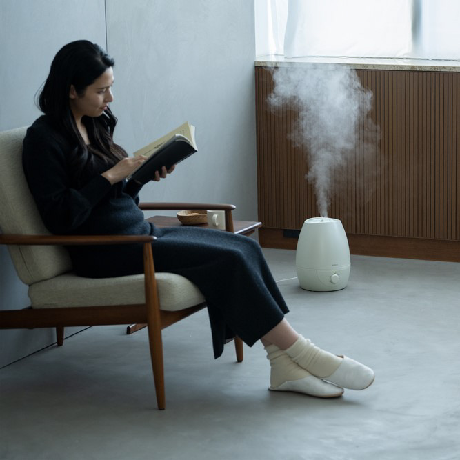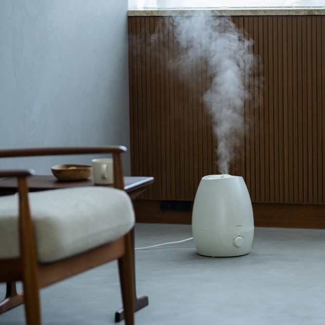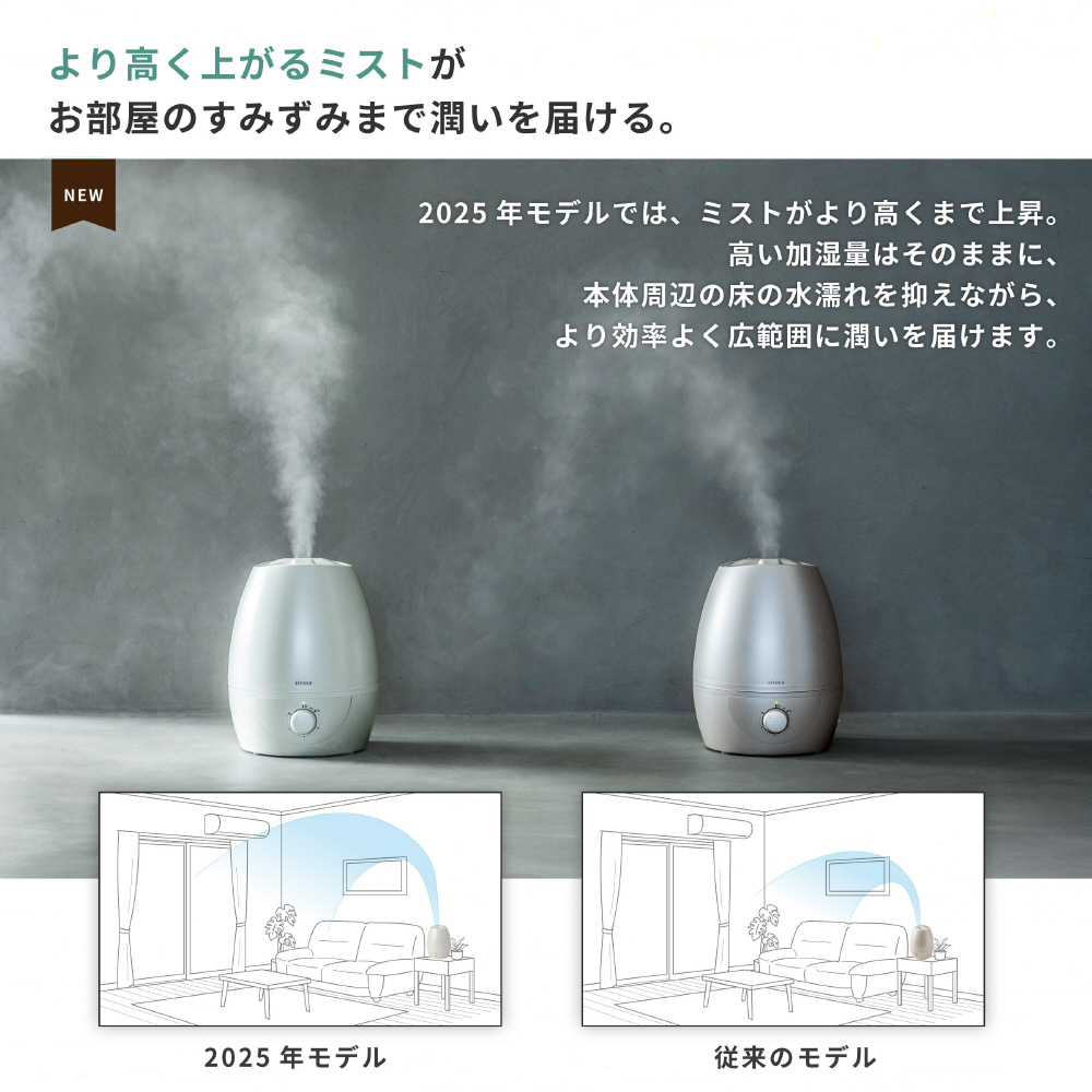 すみずみまでお部屋をうるおすパワフル加湿。抗菌仕様で衛生面にも配慮。たっぷり5Lの大容量だから24時間ずっと快適つづく。