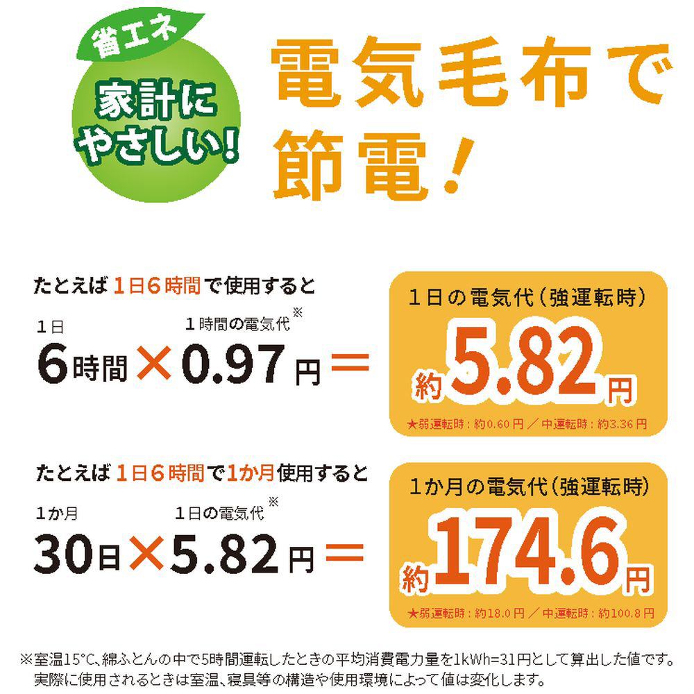消費電力量(1時間あたり):強 約31Wh、中 約18Wh、弱 約3Wh