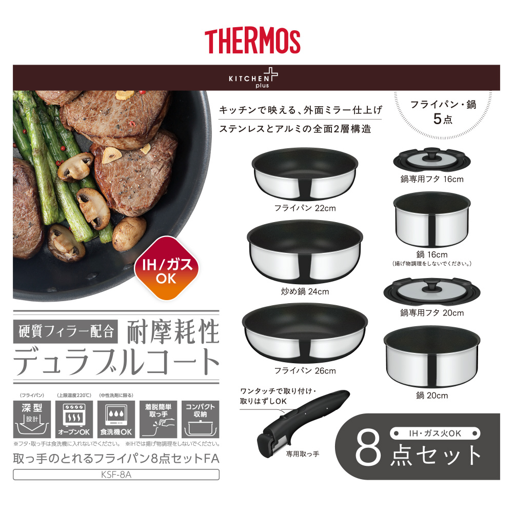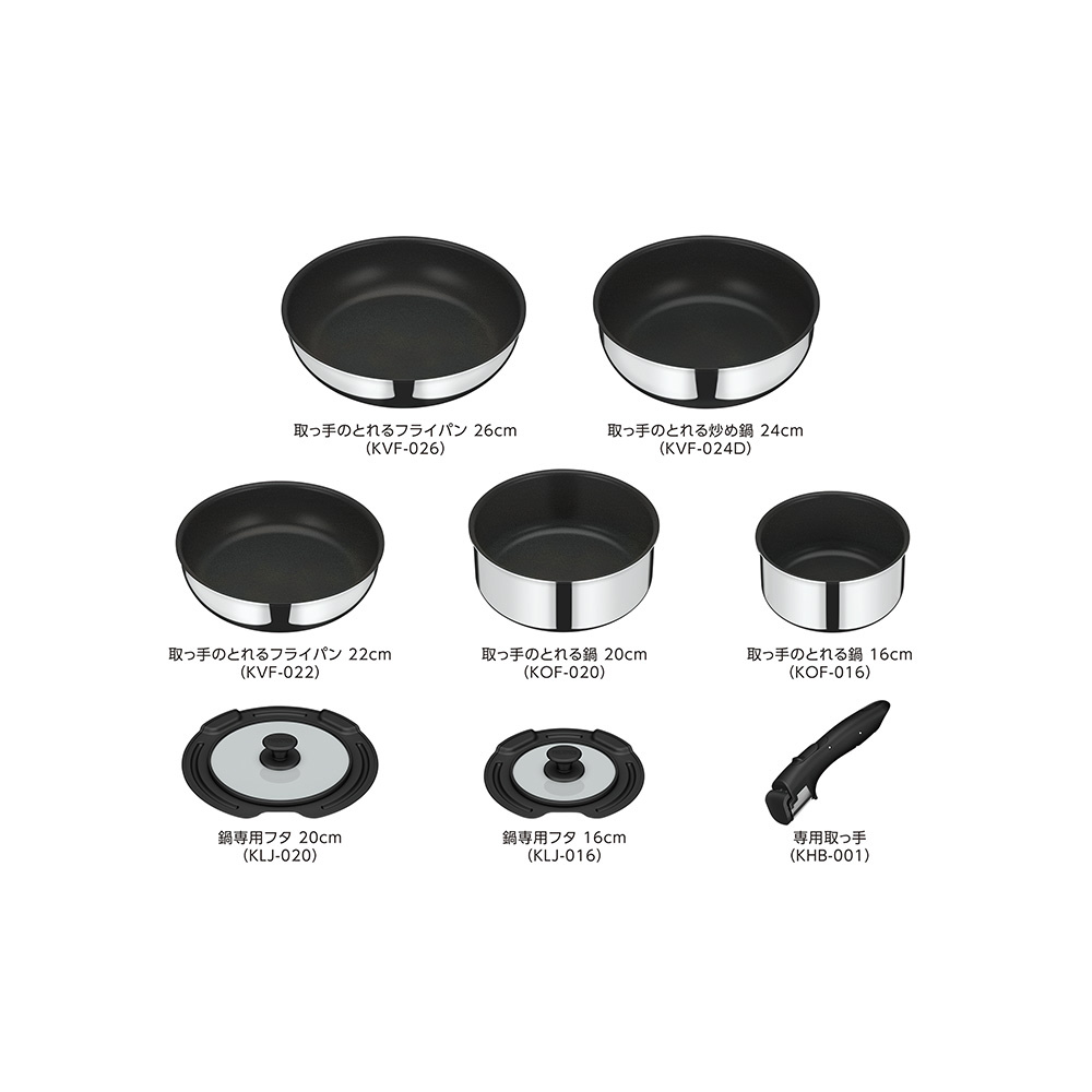 取っ手の取れるフライパン 8点セット ステンレス KSF-8A-S
