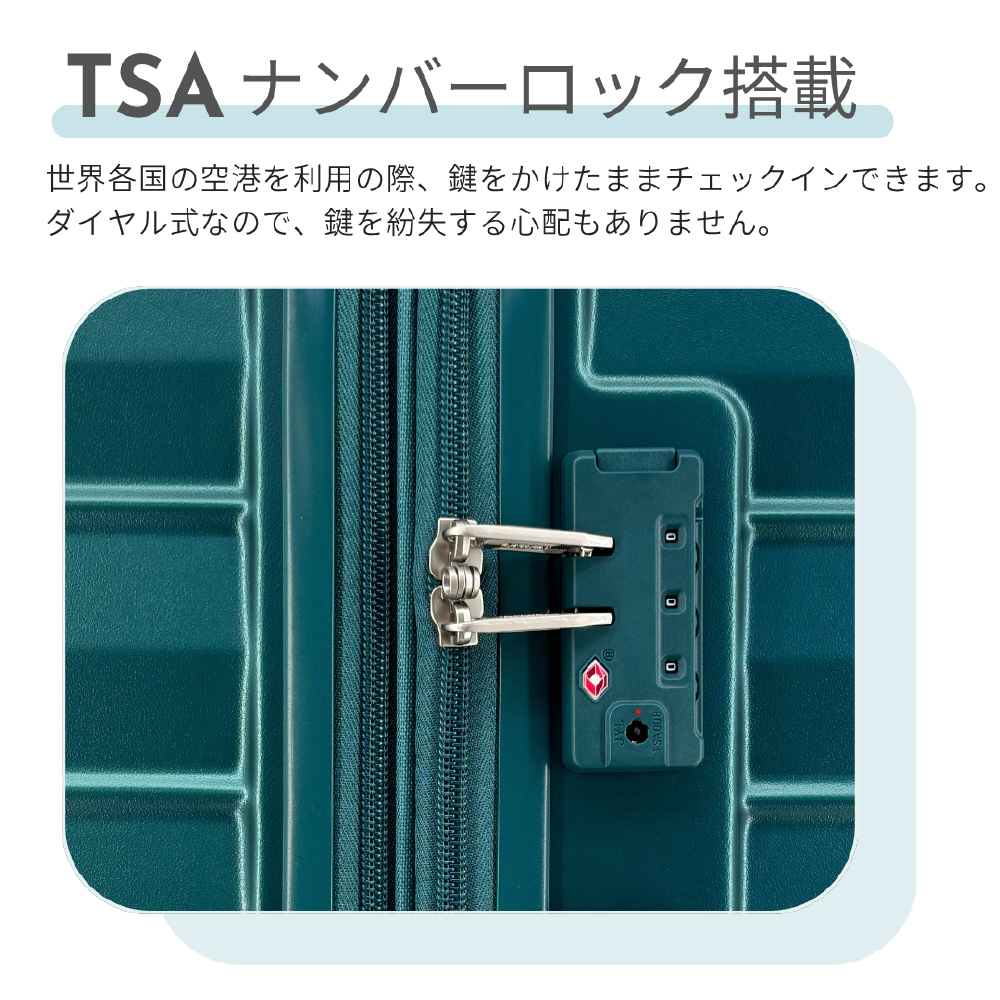 ・機能:エキスパンダー(容量拡張)/360°回転ダブルホイール/TSAダイヤルロック/キャリーフック機能付きサイドスタッド