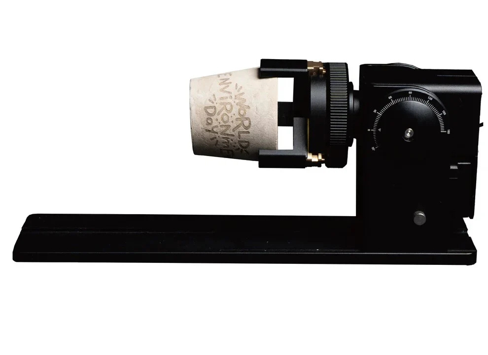 ローラータイプのロータリーと違い内側から支えることが出来るので、取っ手などがある素材にも加工をすることが出来ます。