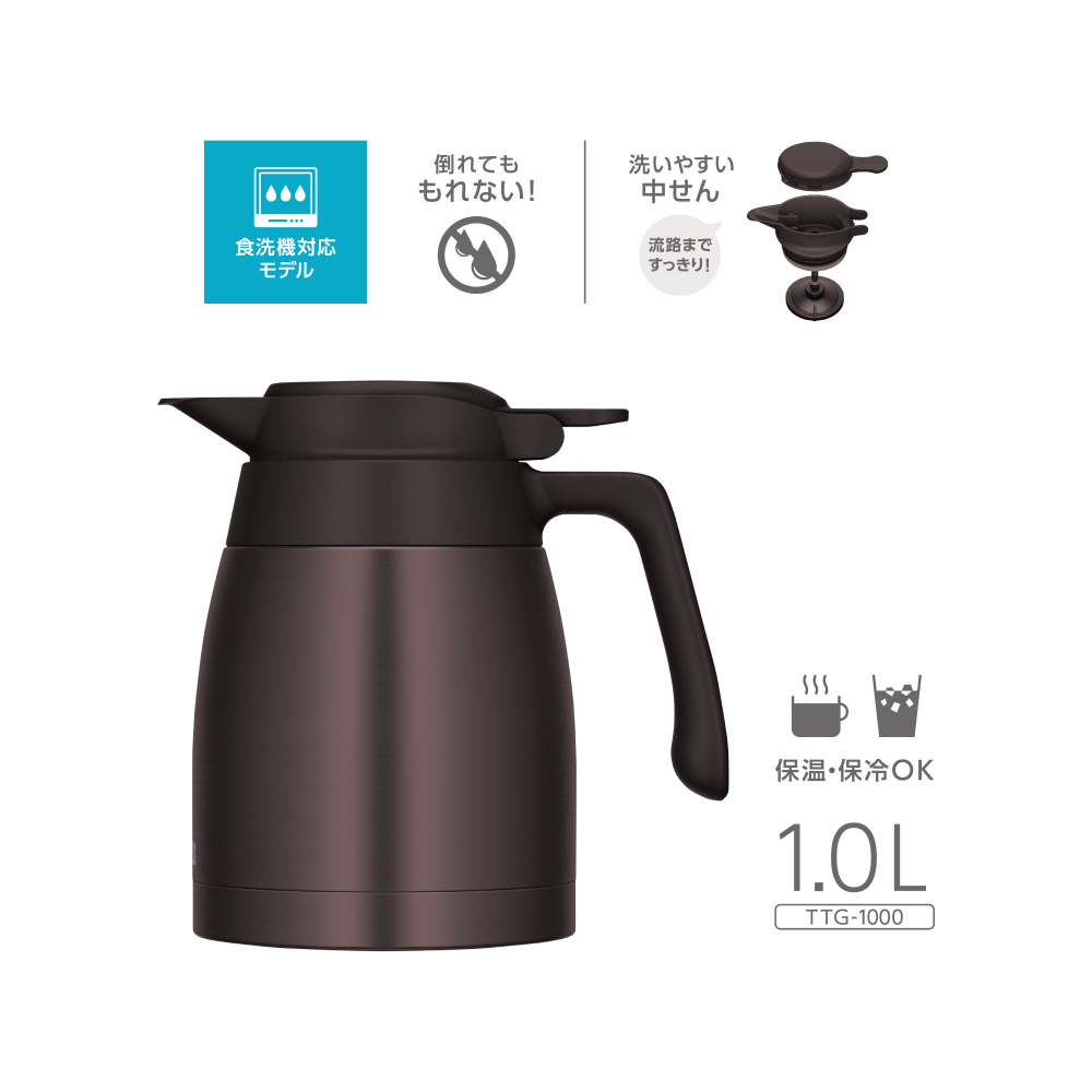 ステンレスポット 食洗器対応モデル ブラウン TTG-1000-BW [1.0L]