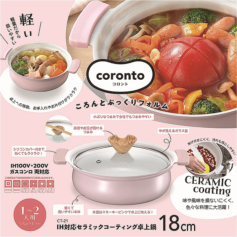 coronto−コロント−IH対応セラミックコーティング卓上鍋18cm CT-21