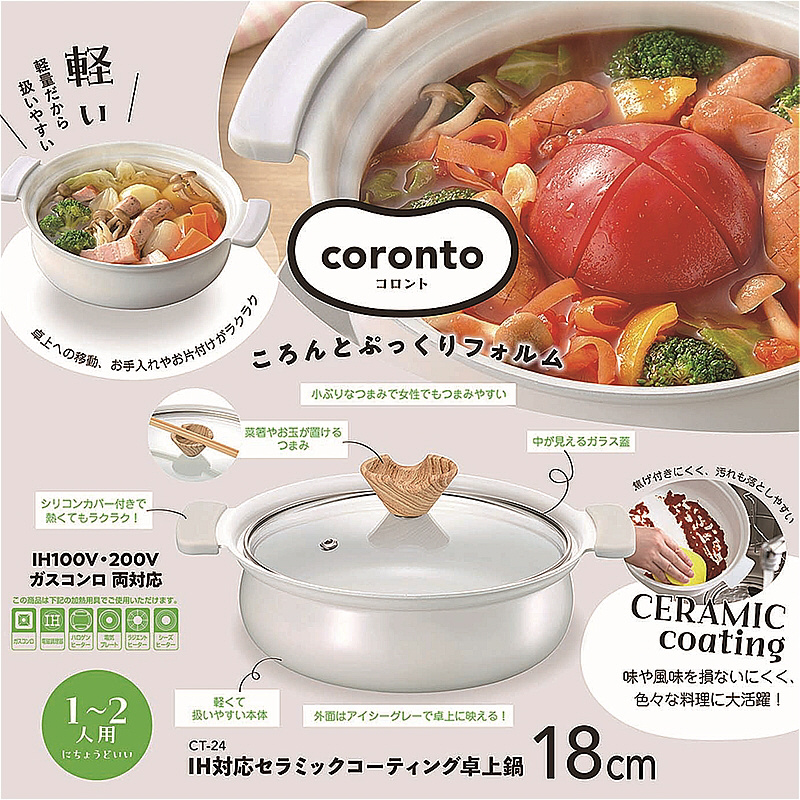 coronto−コロント−IH対応セラミックコーティング卓上鍋18cm(グレー) CT-24