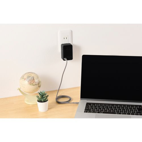 ACアダプター不要。パソコンやスマートフォンなどを、これ1台で高速充電。3つのAC差込口、1つのUSB-Aポート、2つのUSB Type-C(TM)ポートが一体になったモバイルUSBタップです。最大6台のデバイスを同時に接続でき、コンセントの少ない場所で活躍します。出張や旅行時などの多い荷物がこれ1つでまとまり、コンパクトサイズで持ち運びも便利です。