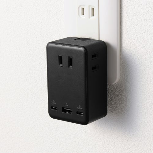電源タップ コンセント ×3 USB Type-C ×2 USB-A ×1 ポート付き PSE適合 67W PD対応 MacBook WindowsPC iPhone Android スマホ充電対応 ブラック T-U09-3AC2BK